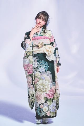 ガーリーな振袖は、パステルカラーと花柄で可愛らしさと華やかさを演出し、若々しい女性らしさを引き立てるデザインの一着です。